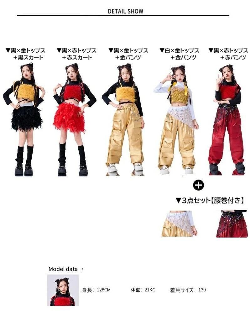 黒×金トップス+黒スカート2点set黒×赤トップス+赤スカート2点set黒×金トップス+金パンツ2点set白×金トップス+金パンツ2点set黒×赤トップス+赤パンツ2点set白×金トップス+金パンツ3点set(腰巻付き)黒×赤トップス+赤パンツ3点set(腰巻付き)黒×金トップスのみ黒×赤トップスのみ白×金トップスのみ黒スカートのみ赤スカートのみ金パンツのみ赤パンツのみ