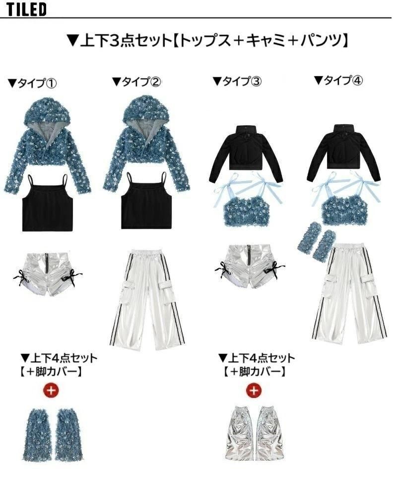 タイプ1上下3点setタイプ2上下3点setタイプ3上下3点setタイプ4上下3点setタイプ1上下4点set(脚カバー込)タイプ3上下4点set(脚カバー込)タイプ1トップスのみタイプ3キャミのみ銀短パンのみ銀長ズボンのみ