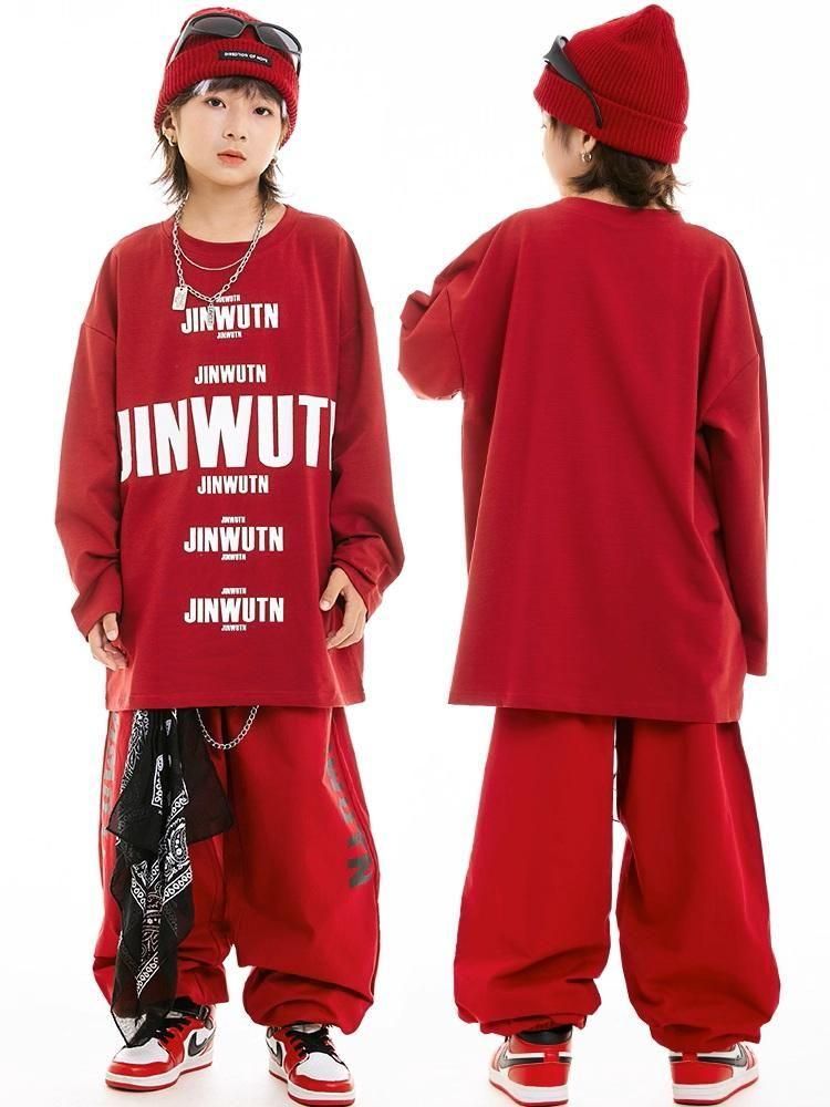長袖ロゴTシャツ・パンツ上下セット【 赤・黒・白 】110-170size