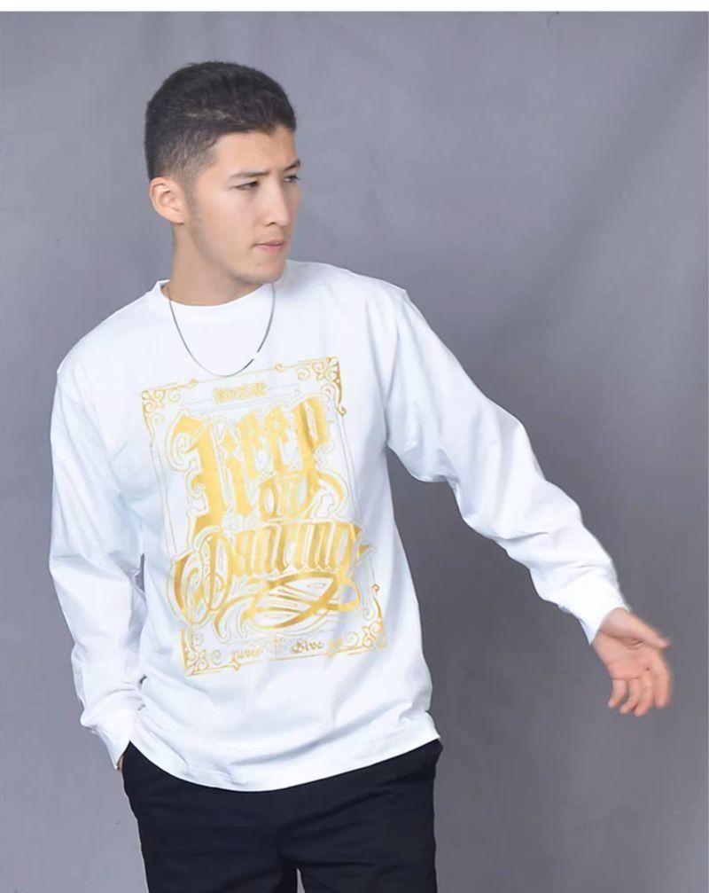 ・きらびやかなゴールドのプリントがかっこいいロンTシャツ!