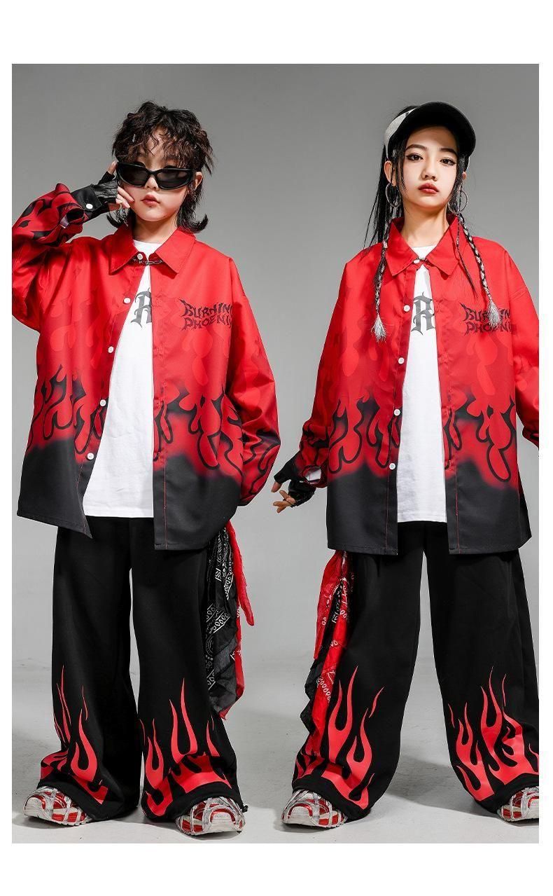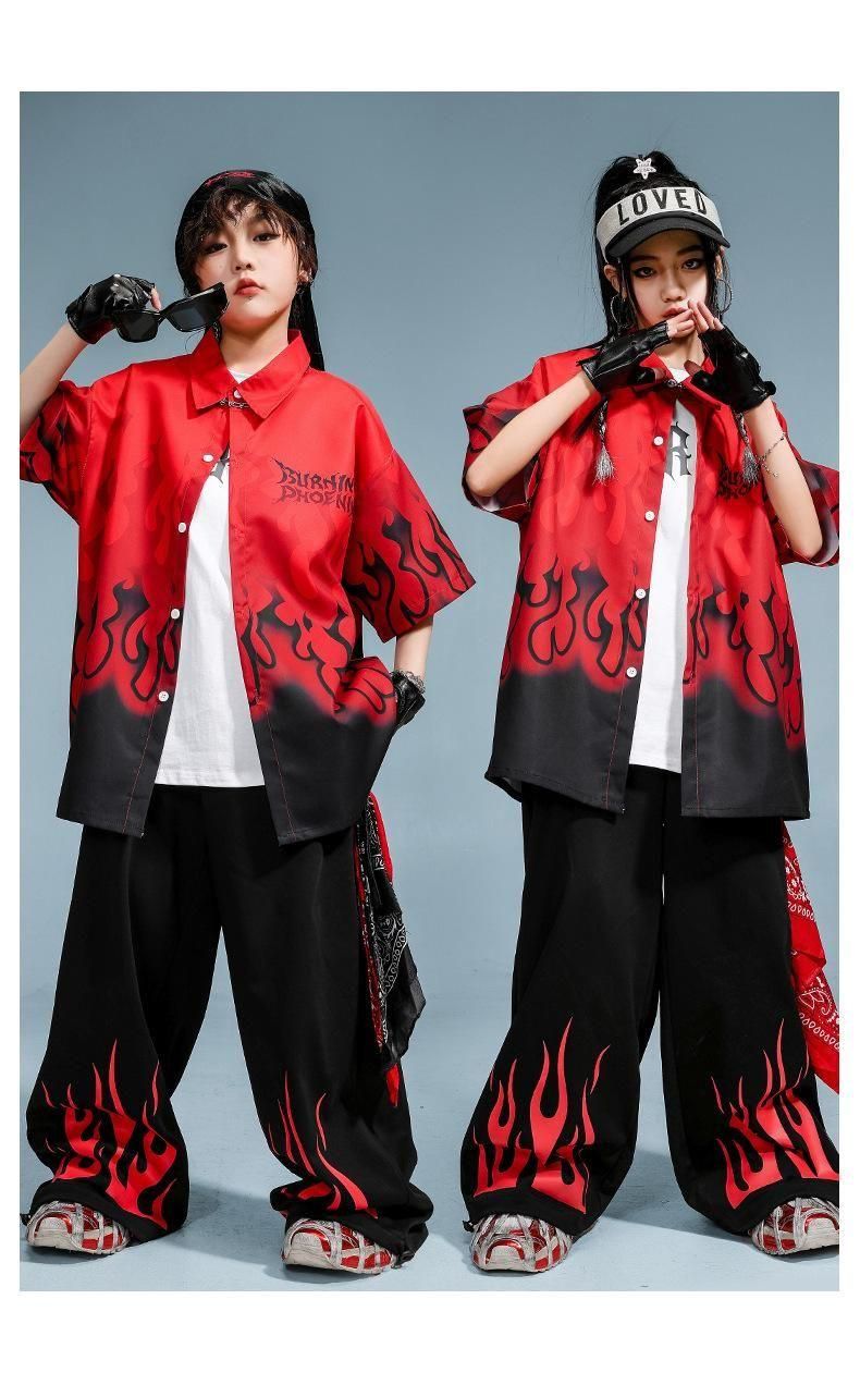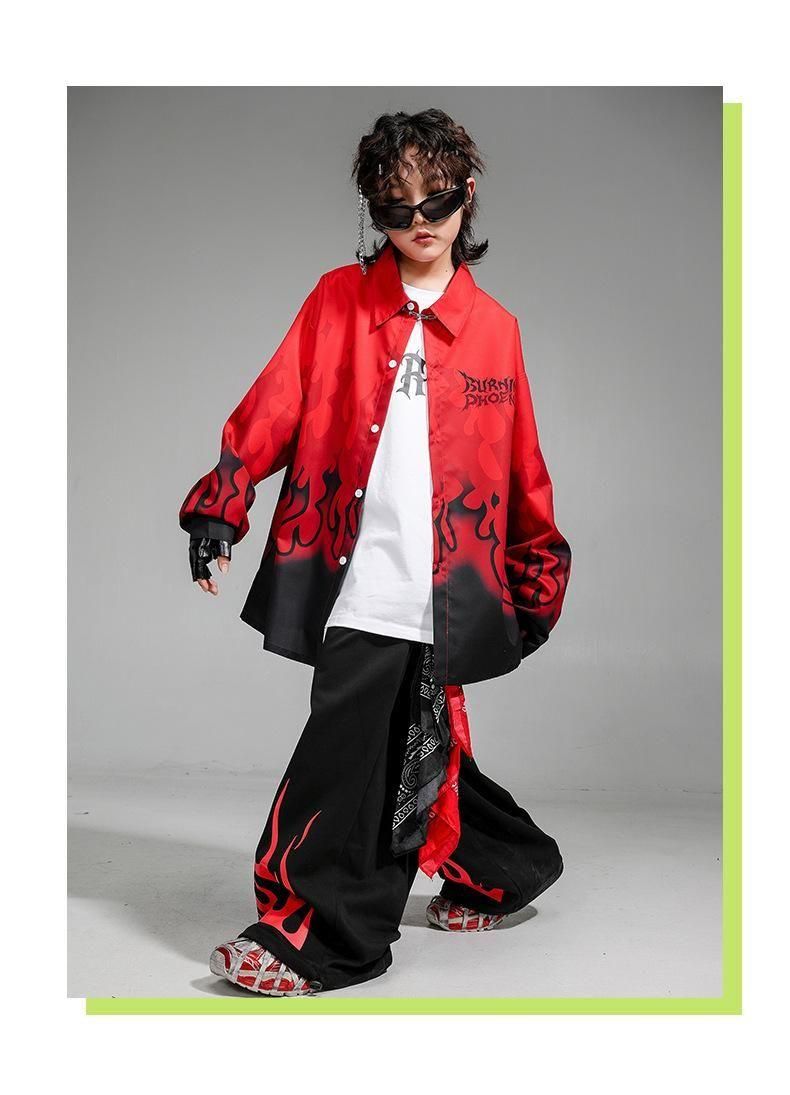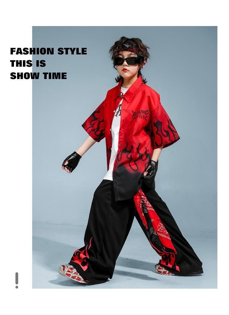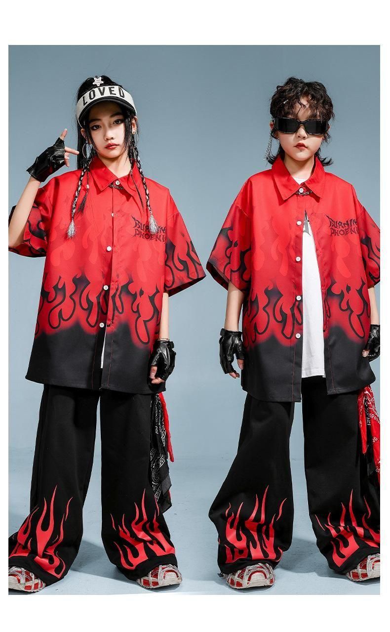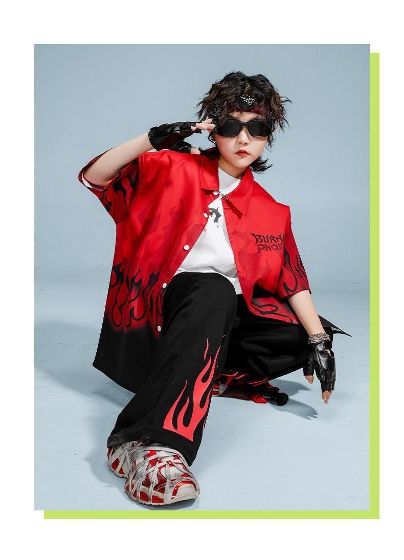 ・クールでかっこいいファイヤーデザインシャツ+パンツの上下セット!