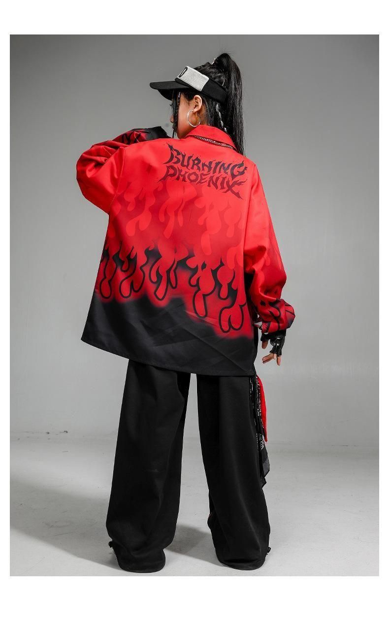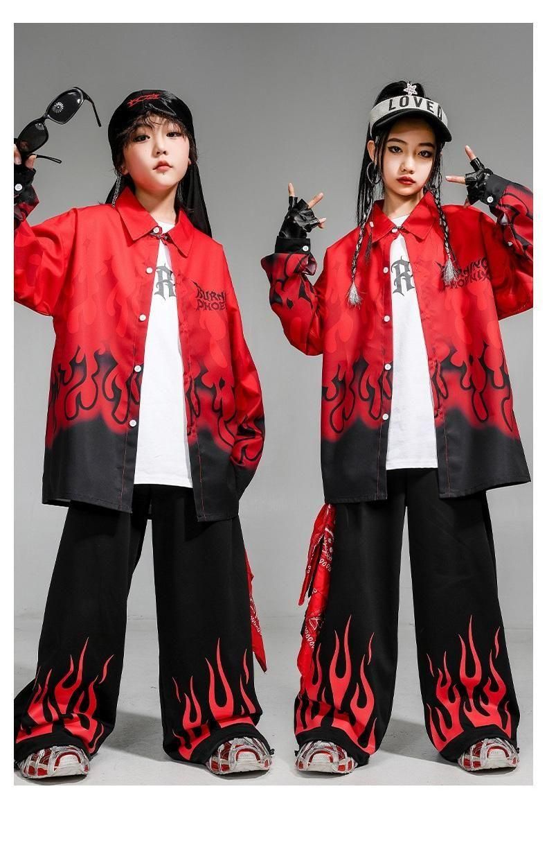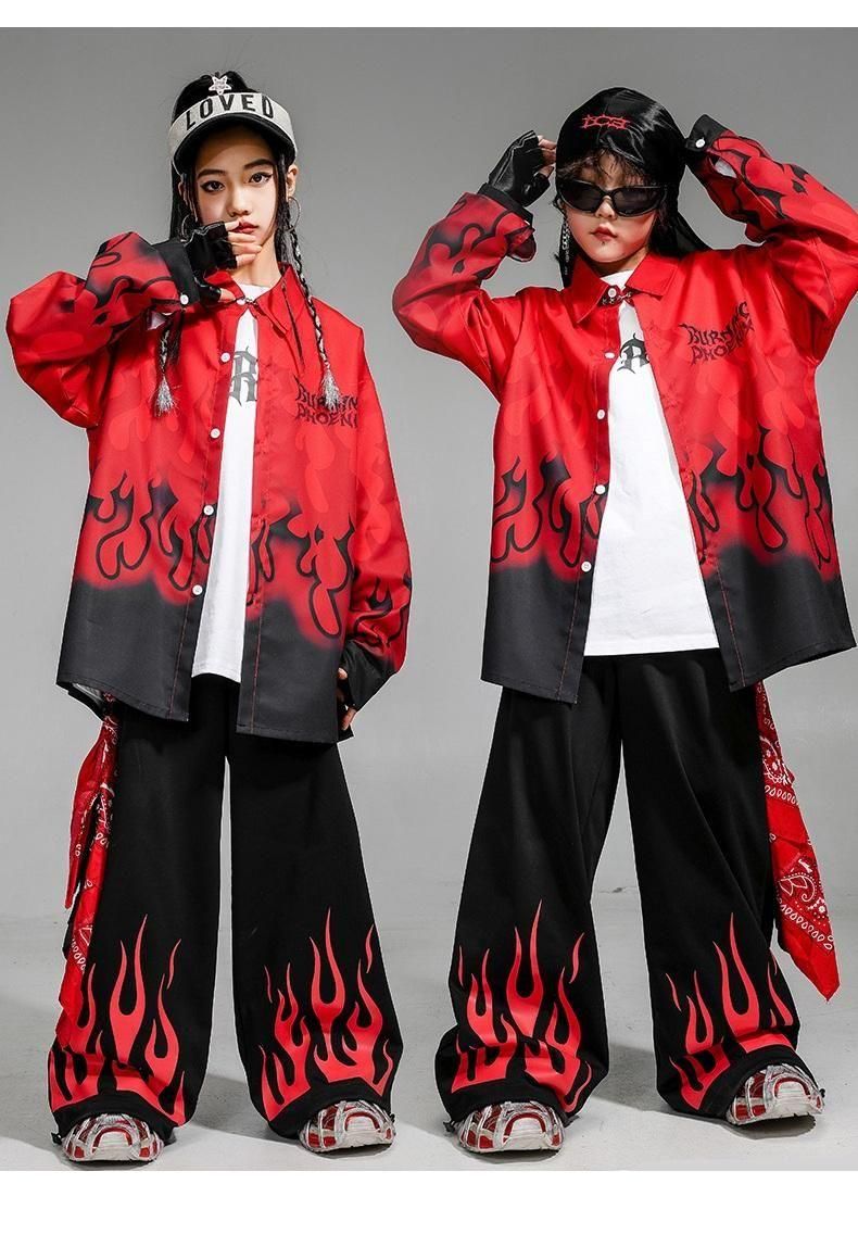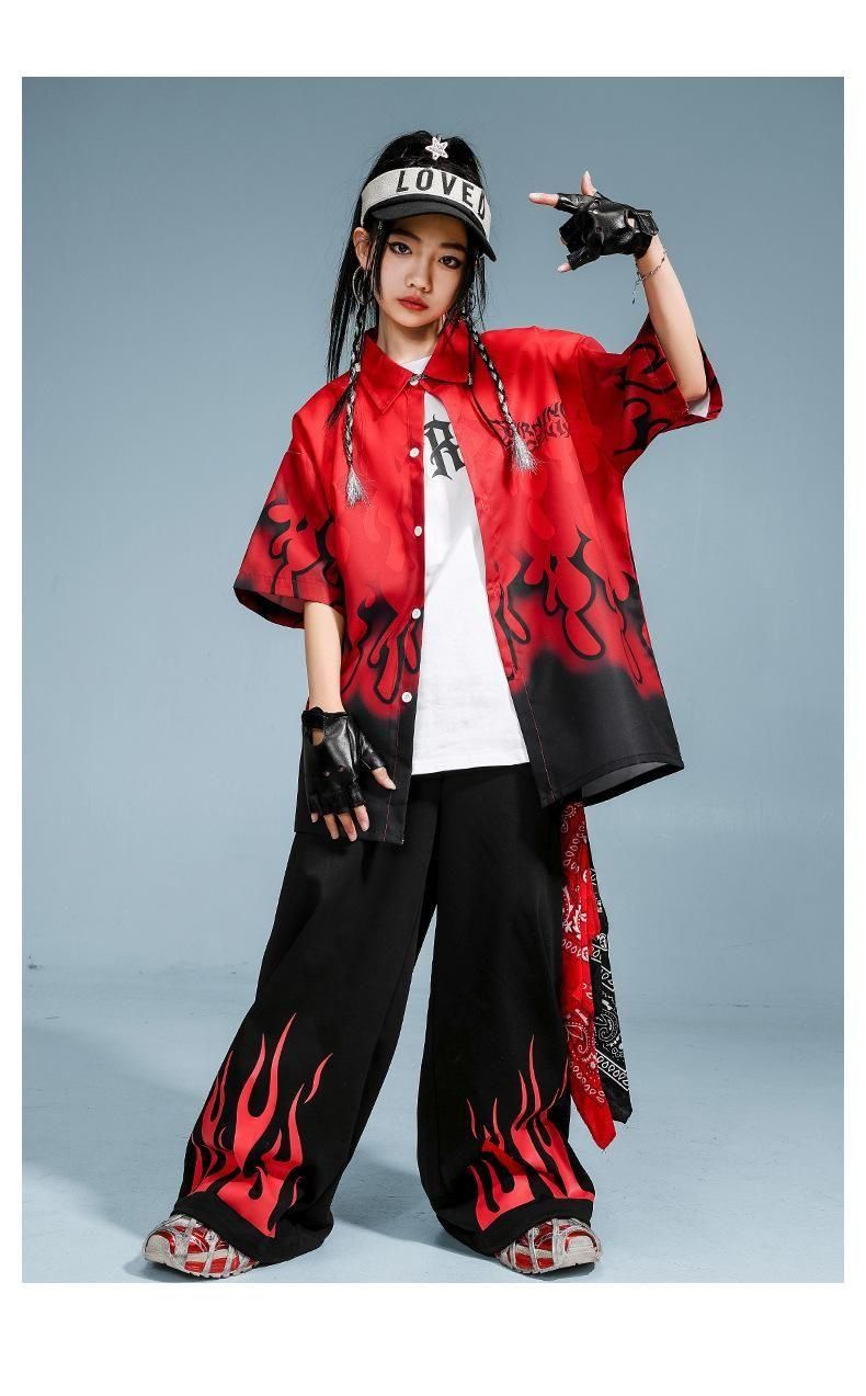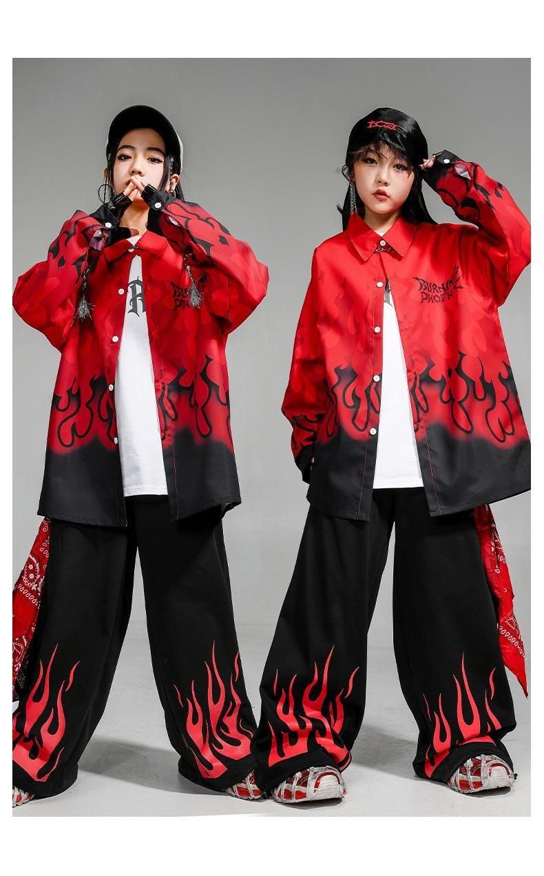 ・クールでかっこいいファイヤーデザインシャツ+パンツの上下セット!