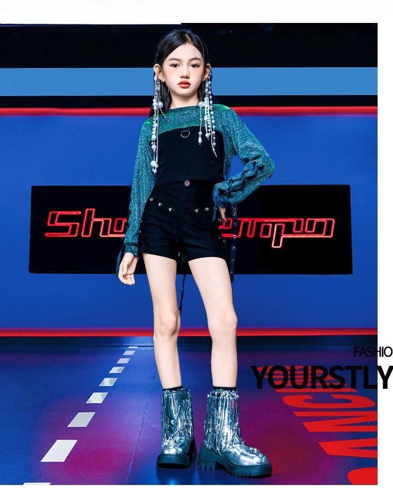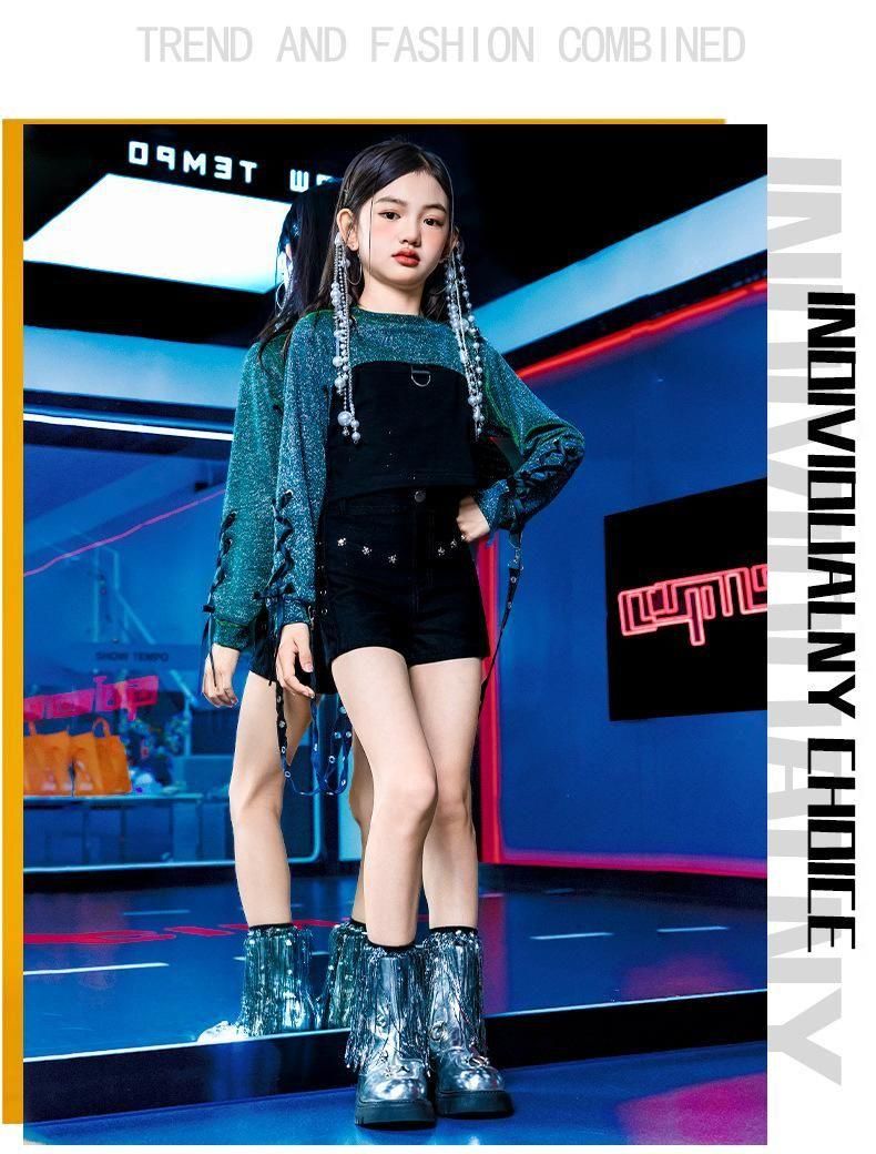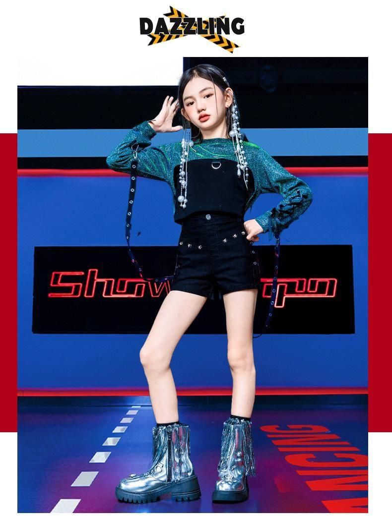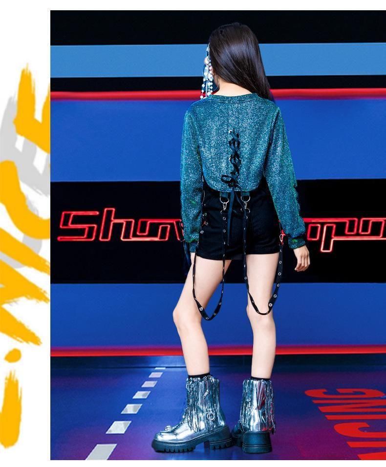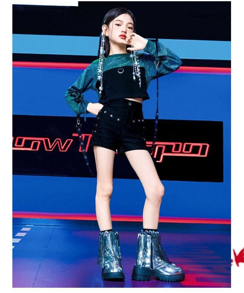 ・キラキララメトップス+レザー調パンツのクールかっこいいダンス衣装!
