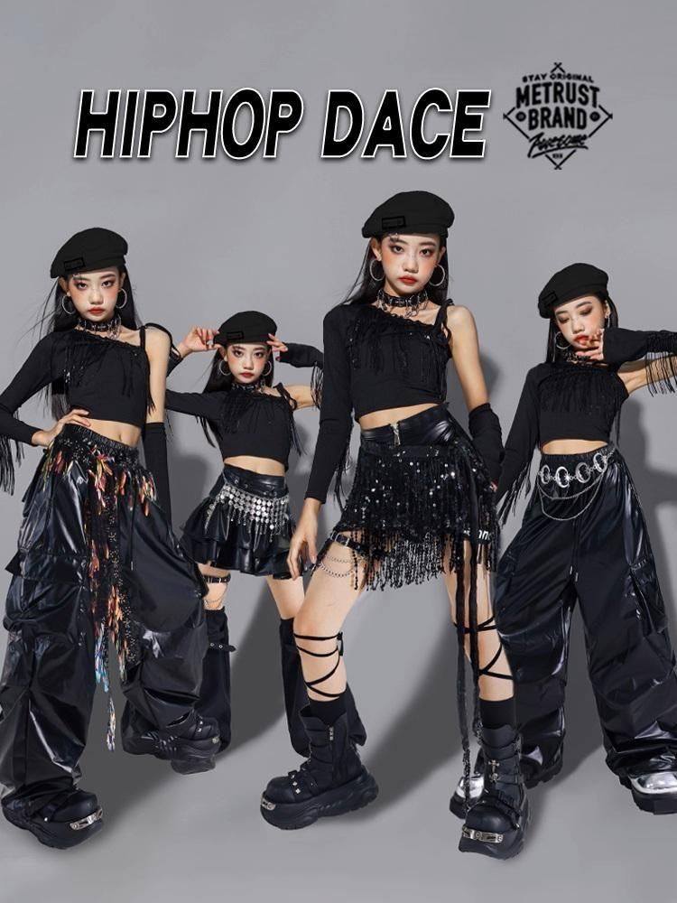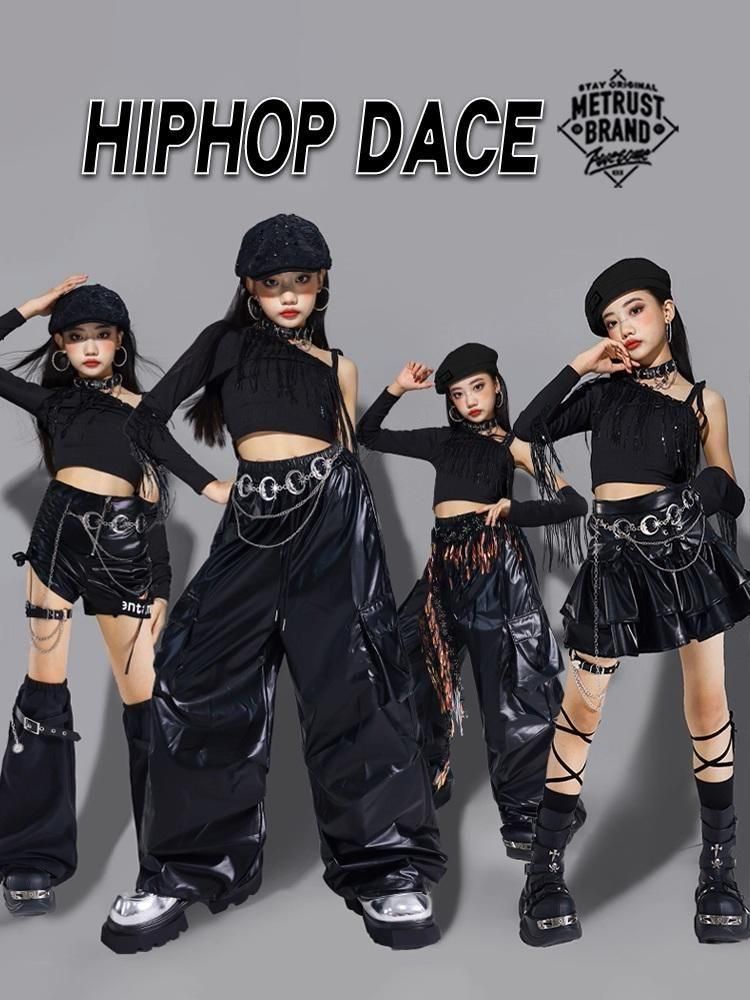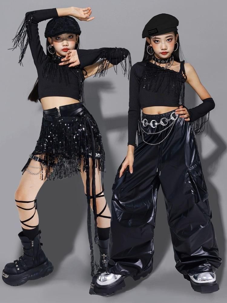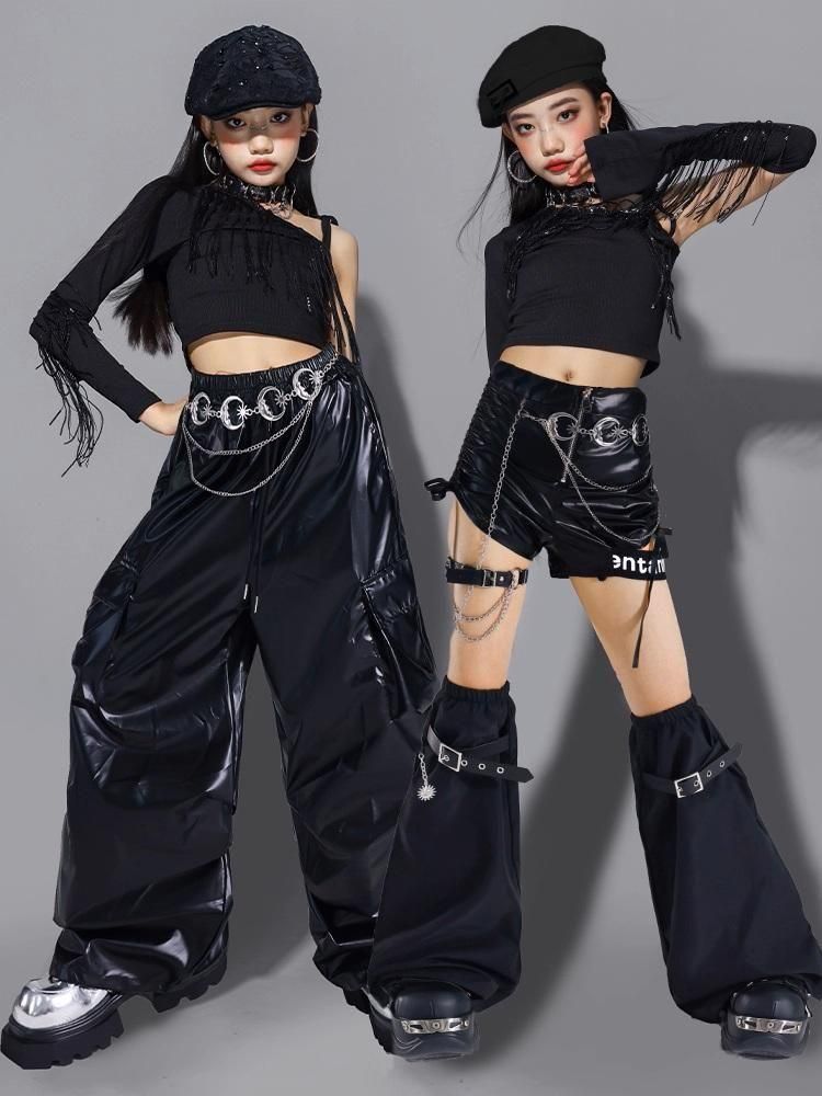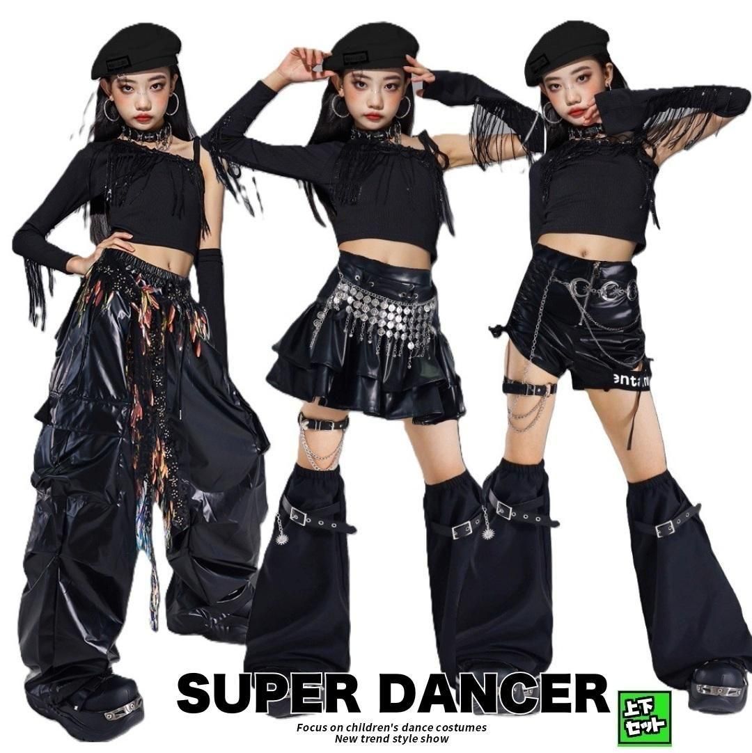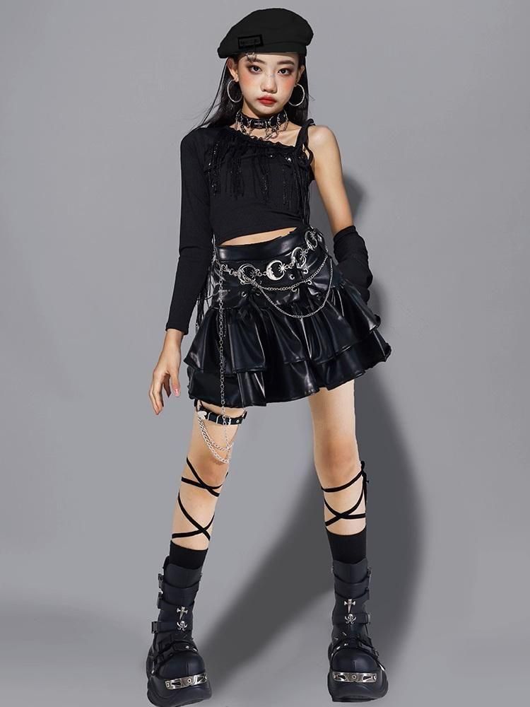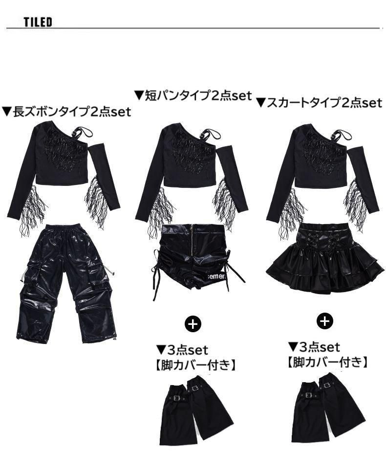 ・アシンメトリートップス+レザー調ボトムスの派手かっこいいダンス衣装!