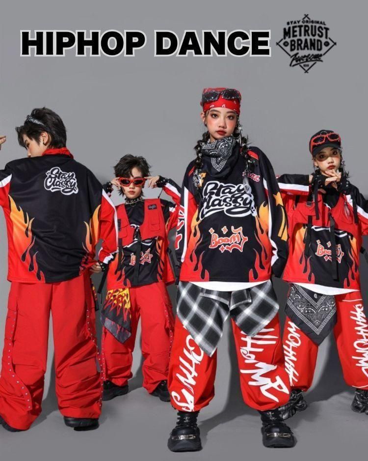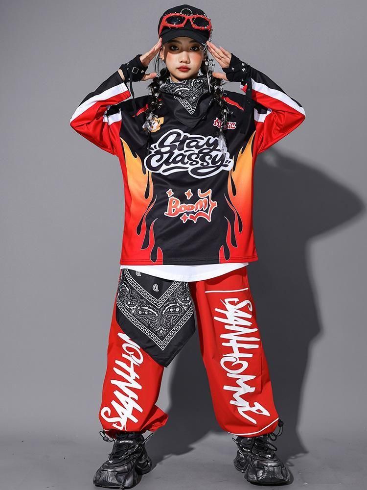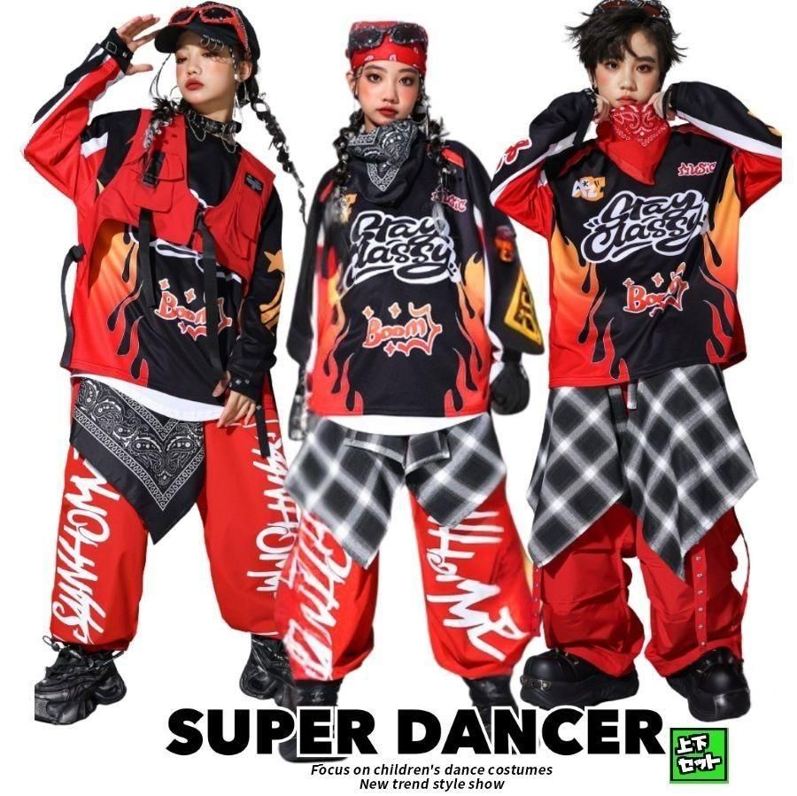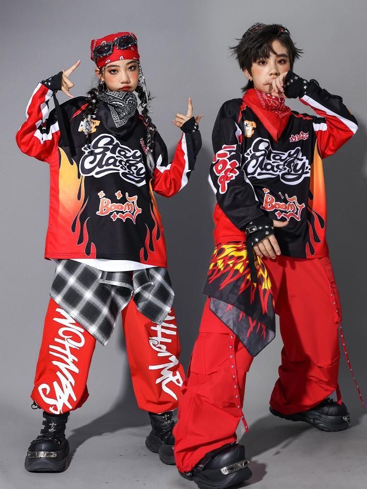 炎デザインTシャツ・パンツ上下セット【 赤・黒 】110-180size