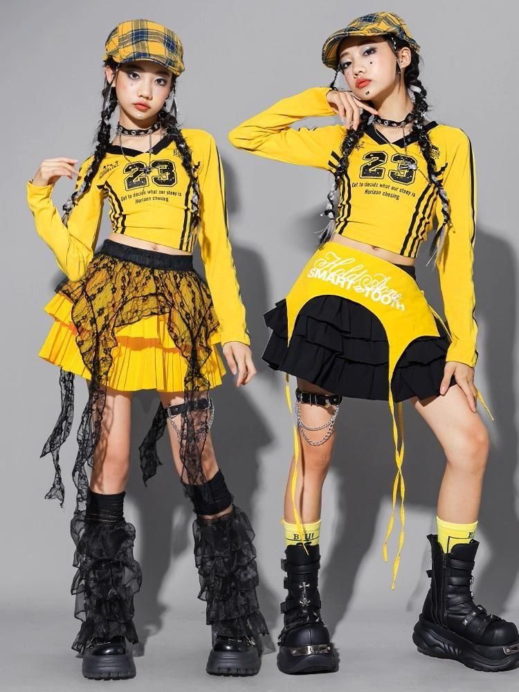 ・イエロー×ブラックの派手かわいいキッズのダンス衣装!!