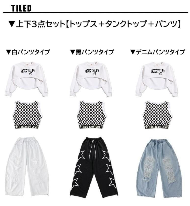 ・個性的で派手かわいいキッズのダンス衣装!!上下3点セット